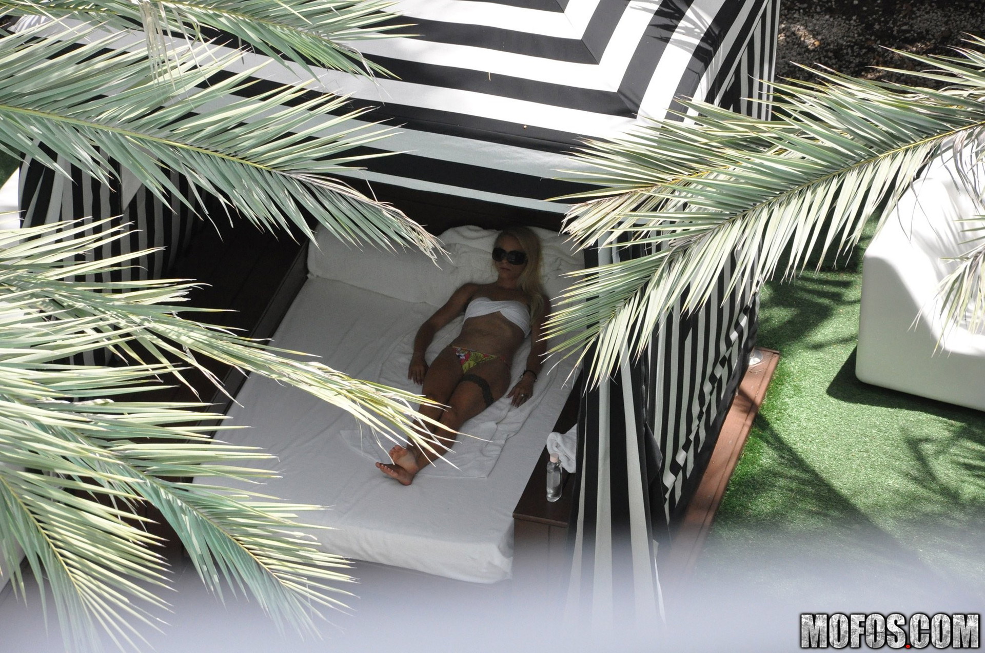 Cameron Canada is outside in her bikini and after a afternoon of that she heads to her room and takes on a cock she found out by the pool!